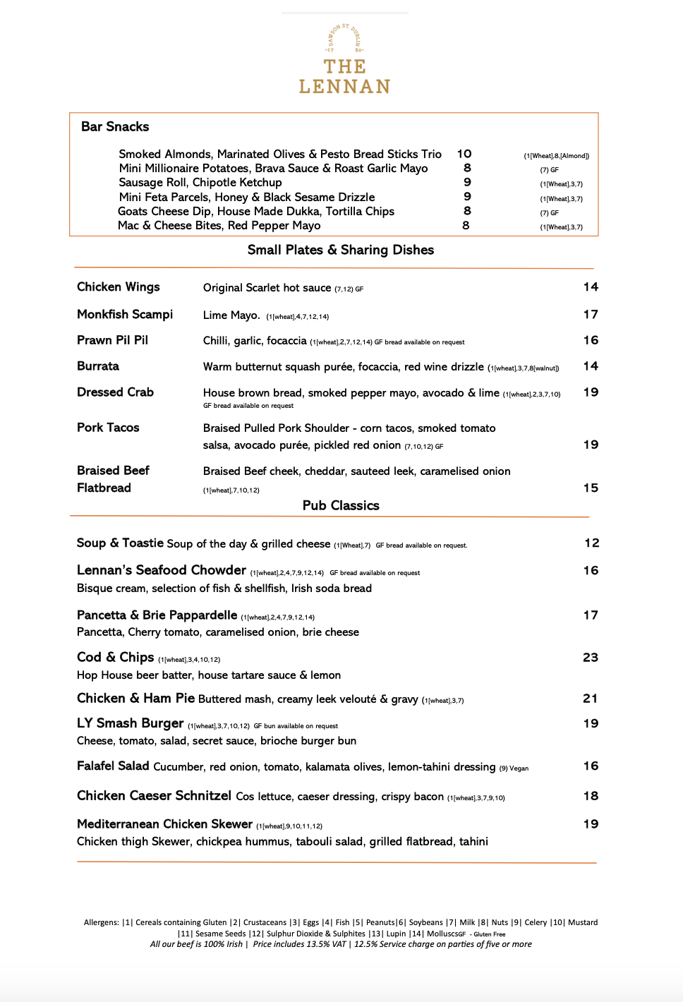 Gastro Pub Menu